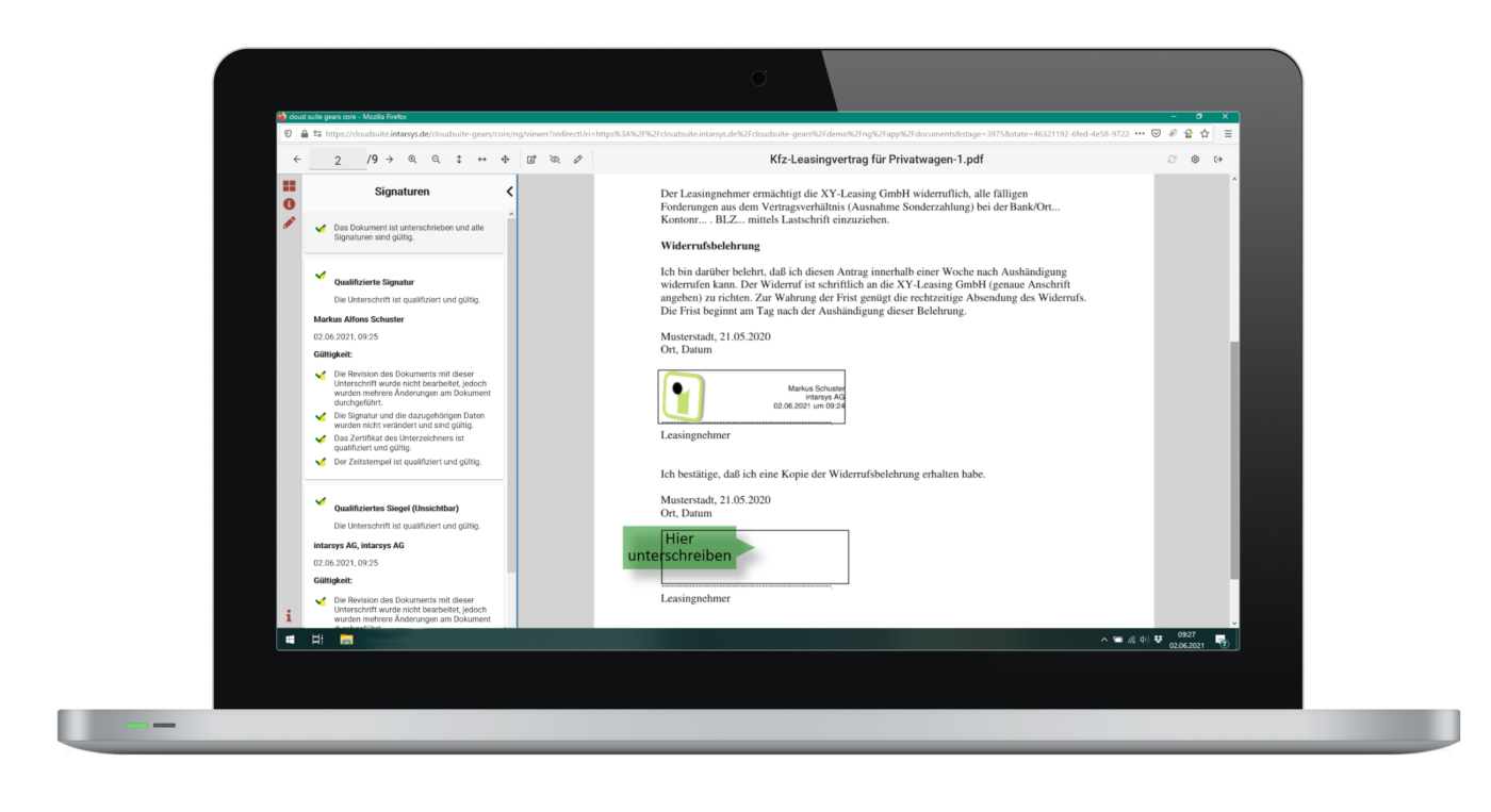 Die Einführung einer Signaturplattform erfolgt in kurzer Zeit, da die rechtsgültige elektronische Signatur von einem Vertrauensdiensteanbieter bereits integriert ist.